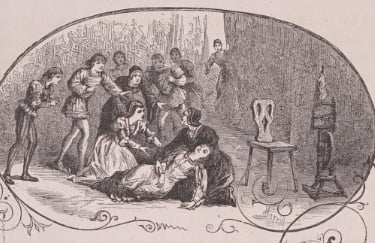 She had no sooner taken up the spindle than, being hasty and unhandy, she pierced her finger with the point. Though it was so small a wound, she fainted away at once and dropped on the floor. The poor old woman called for help; shortly came the ladies in waiting, who tried every means to restore their young mistress; but all in vain. She lay, beautiful as an angel, the color still lingering in her lips and cheeks, her fair bosom softly stirred with her breath; only her eyes were fast closed. When the king, her father, and the queen, her mother, beheld her thus, they knew that all had happened as the cruel fairy meant, and that their daughter would sleep for one hundred years. They sent away all the physicians and attendants, and themselves sorrowfully laid her upon a bed in the finest apartment in the palace. There she slept and looked like a sleeping angel still.